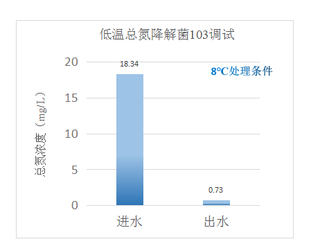 通過技術人員現(xiàn)場投加低溫總氮降解菌103,再配合現(xiàn)場生化系統(tǒng)運行條件控制、優(yōu)化,達到如下效果:
